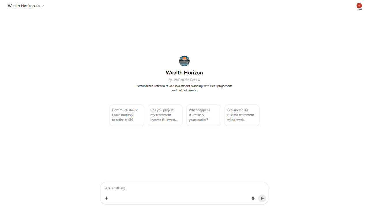 This GPT is part of an experiment: can AI help you think clearly about long-term money decisions? Wealth Horizon walks you through compound interest, savings projections, and retirement goals — while suggesting next steps and adapting to your inputs. It’s not financial advice, but it’s a promising glimpse of what agentic AI could become.